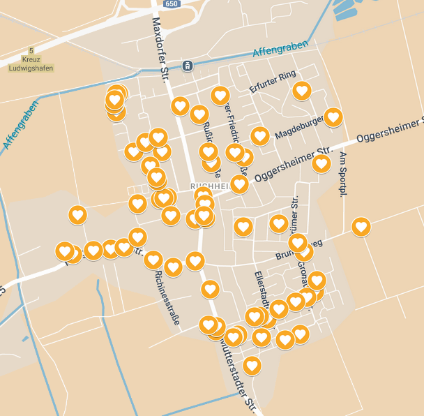 Nach Ablauf der Anmeldung (bis 23.08.2025 – 2 Wochen vor dem Hofflohmarkt) wollen wir so schnell wie möglich eine Karte erstellen, anhand derer man sämtliche Hofflohmärkte in Ruchheim finden kann und so seine Einkaufstour durch Ruchheim planen kann.